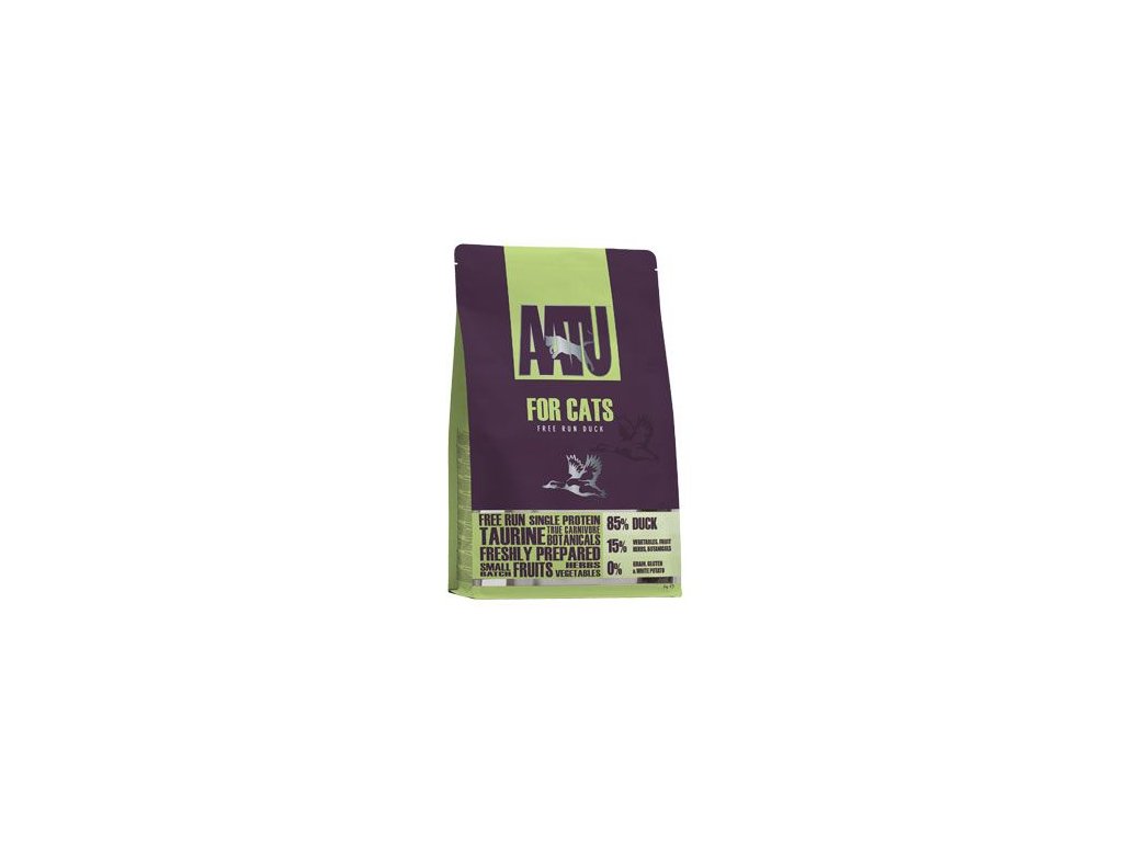 AATU - evoluční přírodní krmivo speciálně vyvinuto pro kočky. Obsahuje 85% masa a specifické aminokyseliny vyskytující se v mase, jako je taurin, arginin a tryptofan.