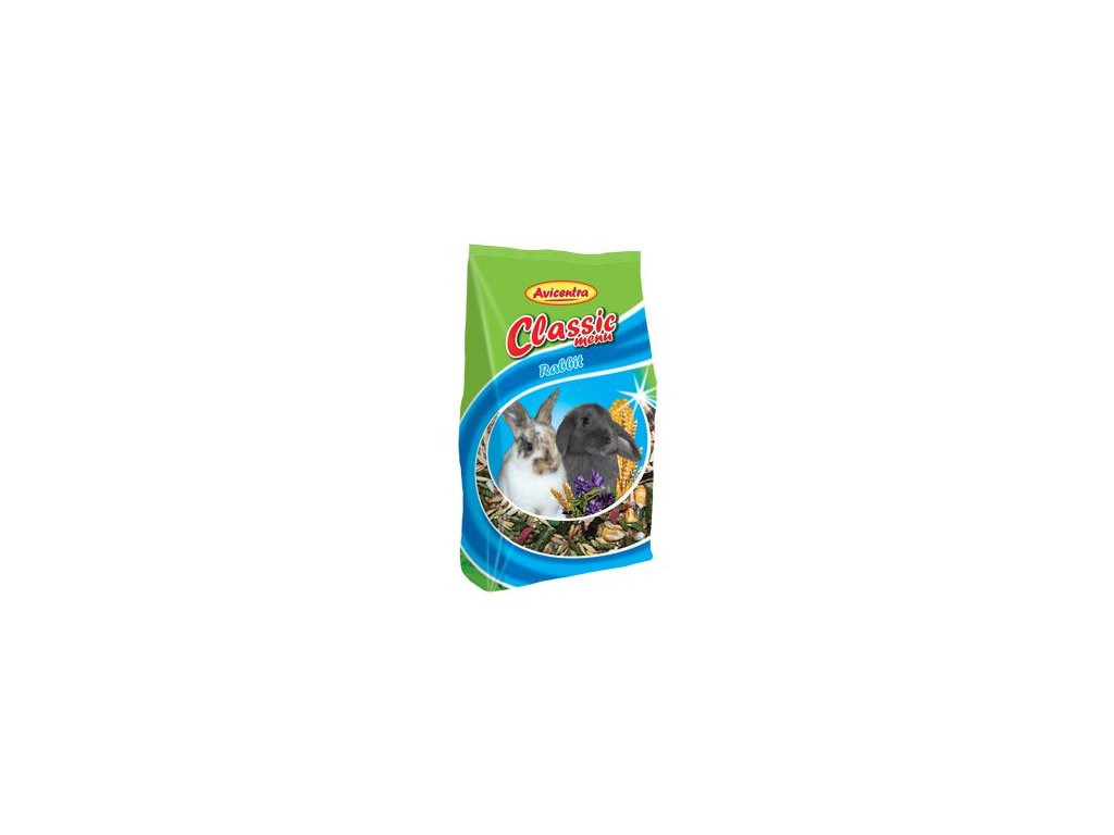 Základní krmná směs pro králíky. Složení: Oves celý, ječmen, pšenice, kukuřice, úsušky pícmin, extrudované obiloviny