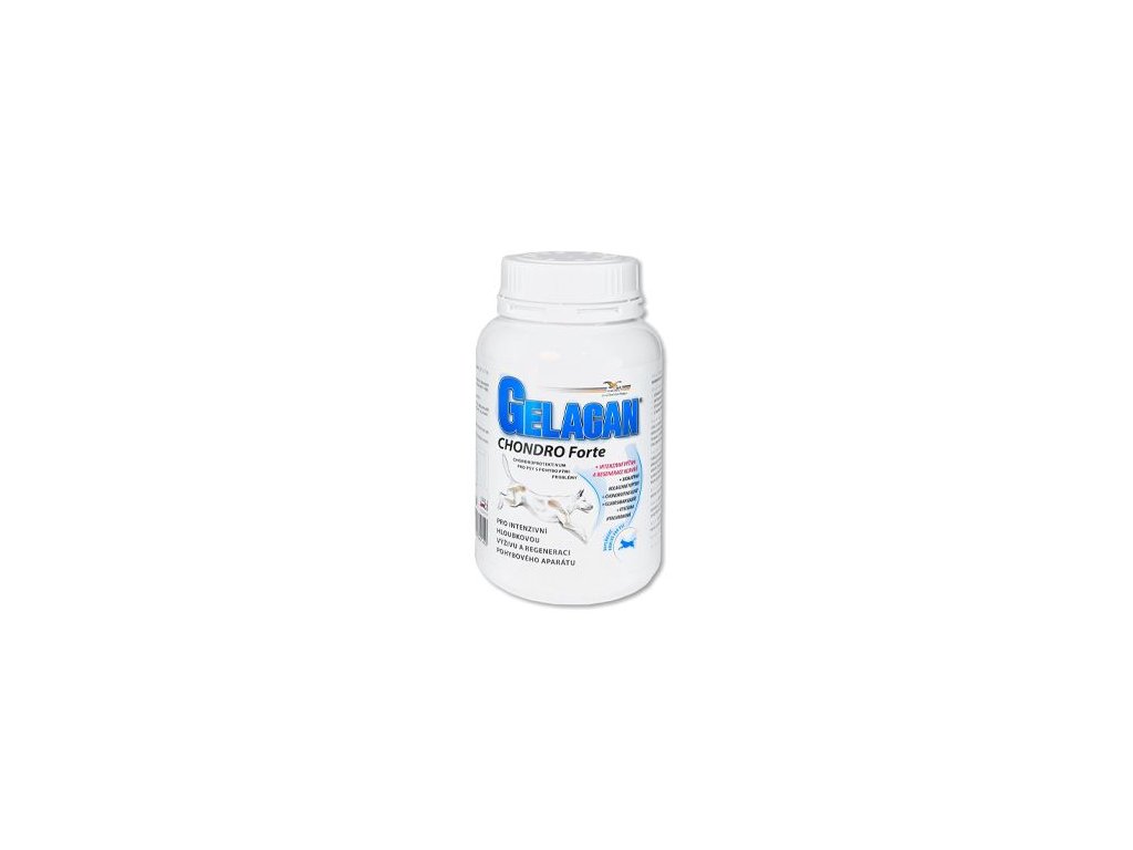 Gelacan® Chondro Forte je doplňkové krmivo - komplexní perorální chondronutraceutikum pro podporu reparativních procesů v kloubním systému při léčbě chorob pohybového aparátu psů.Gelacan® Chondro Forte je vhodný zejména: